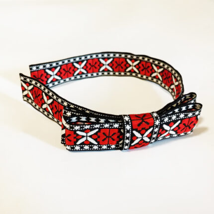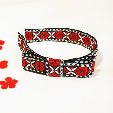 Coronita cu motive traditionale, din metal imbracat in panglica tesuta.Culori: rosu - alb - negru.